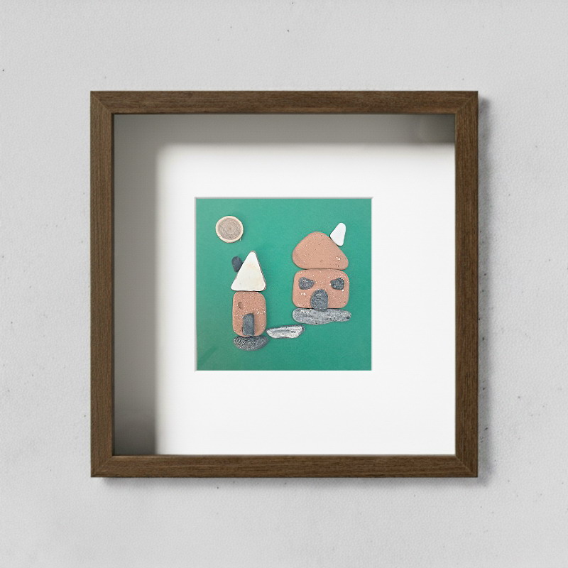 Tiny Homes – un tablou realizat din pietre care formează căsuțe minimaliste, care emană o atmosferă calmă, aproape poetică. Parcă natura însăși ar fi fost invitată să spună o poveste despre frumusețea vieții simple.